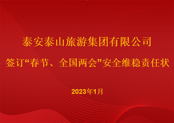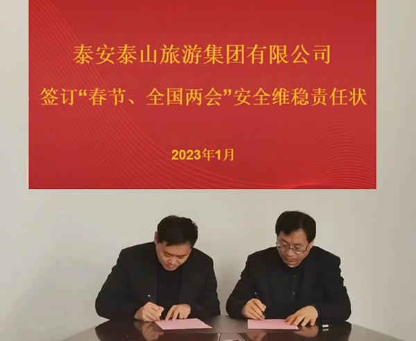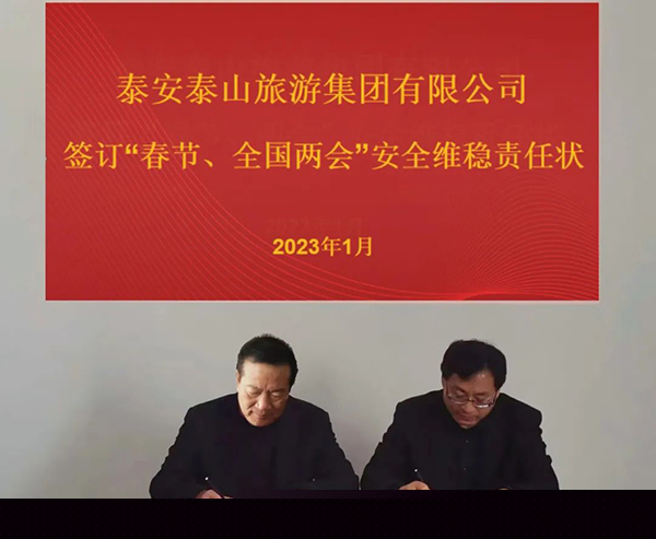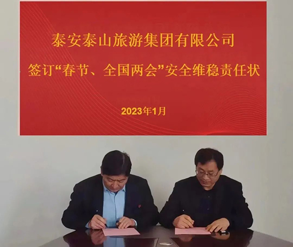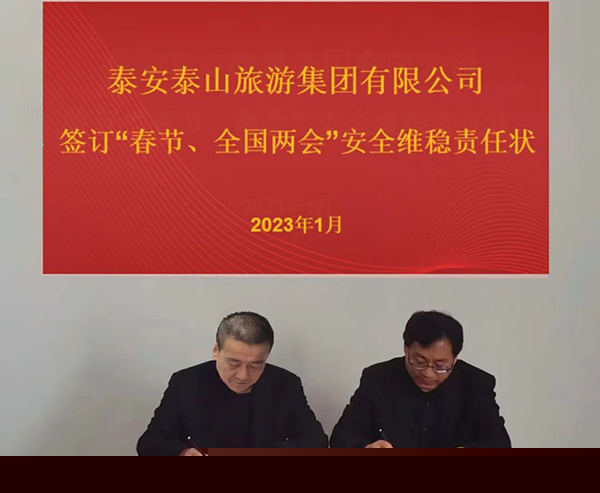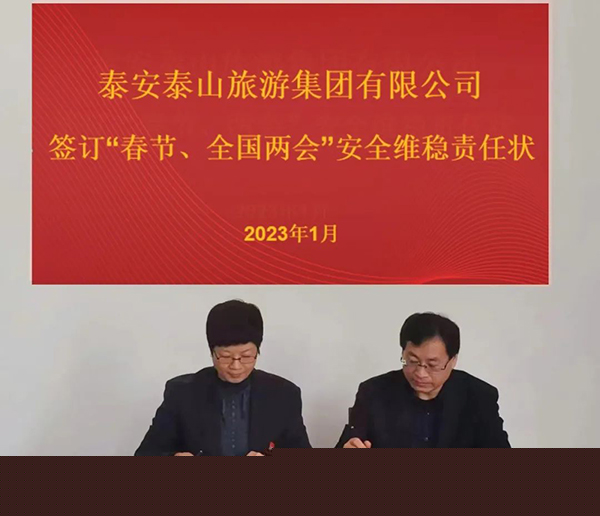 为保证2023年春节及“全国两会”期间平稳有序的安全稳定形势,旅游集团压实主体责任,细化目标任务,于近期举行了“春节、全国两会责任状”签订仪式。
