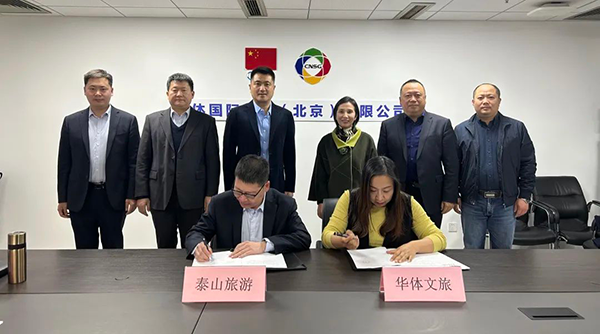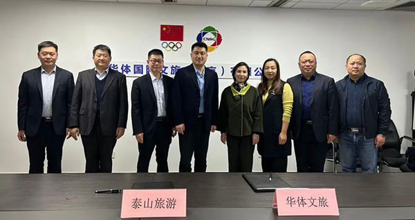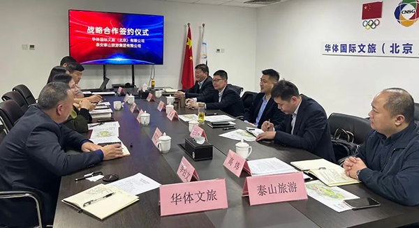 签约仪式上,华体国际文旅、泰山旅游集团分别介绍了业务领域、项目建设及发展运营情况,并就体育旅游融合发展进行深度座谈交流、达成合作共识。华体国际文旅总经理肖景丽、泰山旅游集团副总经理刘忠天代表双方签署战略合作协议。