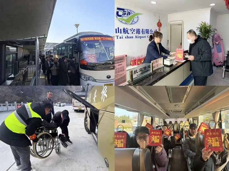 泰安旅汽科学调度运力,加密班次,全时监控保畅保安全。泰山航空港推出“新春福袋”,赠送马年盲盒、代金券等好礼,让旅途充满惊喜与温情。